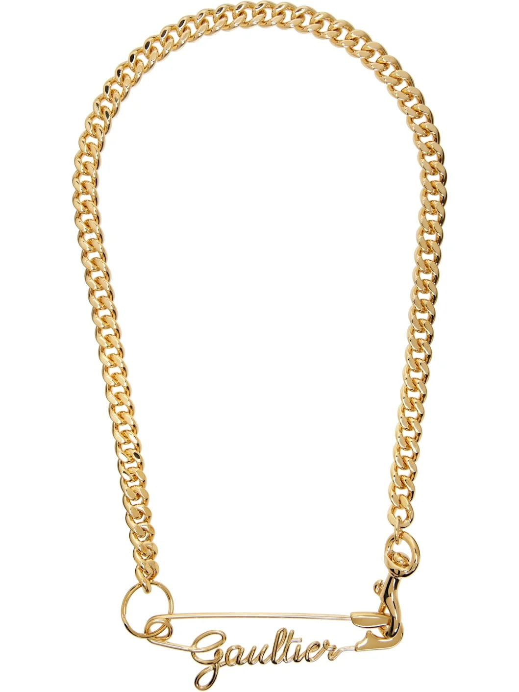 Curb chain necklace in gold-tone brass and bronze · Logo at safety-pin and lobster-clasp fastening · L25.5" Supplier color: Gold Brass, bronze. Made in Italy 252808M145005