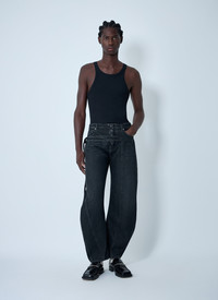 Five-pocket jeans in straight-leg construction with front strap detail. - Mid-rise - Top-button and zip-fly fastening - Belt loops - Five pockets - 100% Cotton. Machine wash cold - Color: Black - Code: 25/03-W-TR022-D016-06