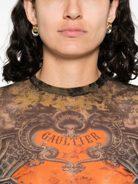 logo~print top Highlights - Black - Sheer - All-over graphic print - Round neck - Long sleeves Made in Italy Composition Polyamide 100% SIZE & FIT Model measurements Height 5 ft 10 in(1.79 m) Bust/Chest 33.07 in(84 cm) Hips 35.82 in(91 cm) Waist 24.01 in(61 cm) FittingInformation Designed for a close fit throughout Made from a midweight stretch fabric, this piece offers elasticity and flexibility when worn Washing instructions Hand Wash
