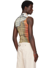 Double-faced nylon mesh tank top. · Semi-sheer · Graphic and stripes printed throughout · Locker loop at back collar Supplier color: Orange/White/Black 100% polyamide. Made in Italy 252808M214006