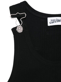 ribbed-knit embellished vest Highlights - Black - Ribbed knit - Round embellishments - Sleeveless - Round neck - Straight hem Imported Composition Cotton 100% Washing instructions Machine Wash