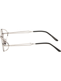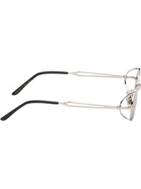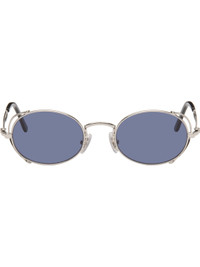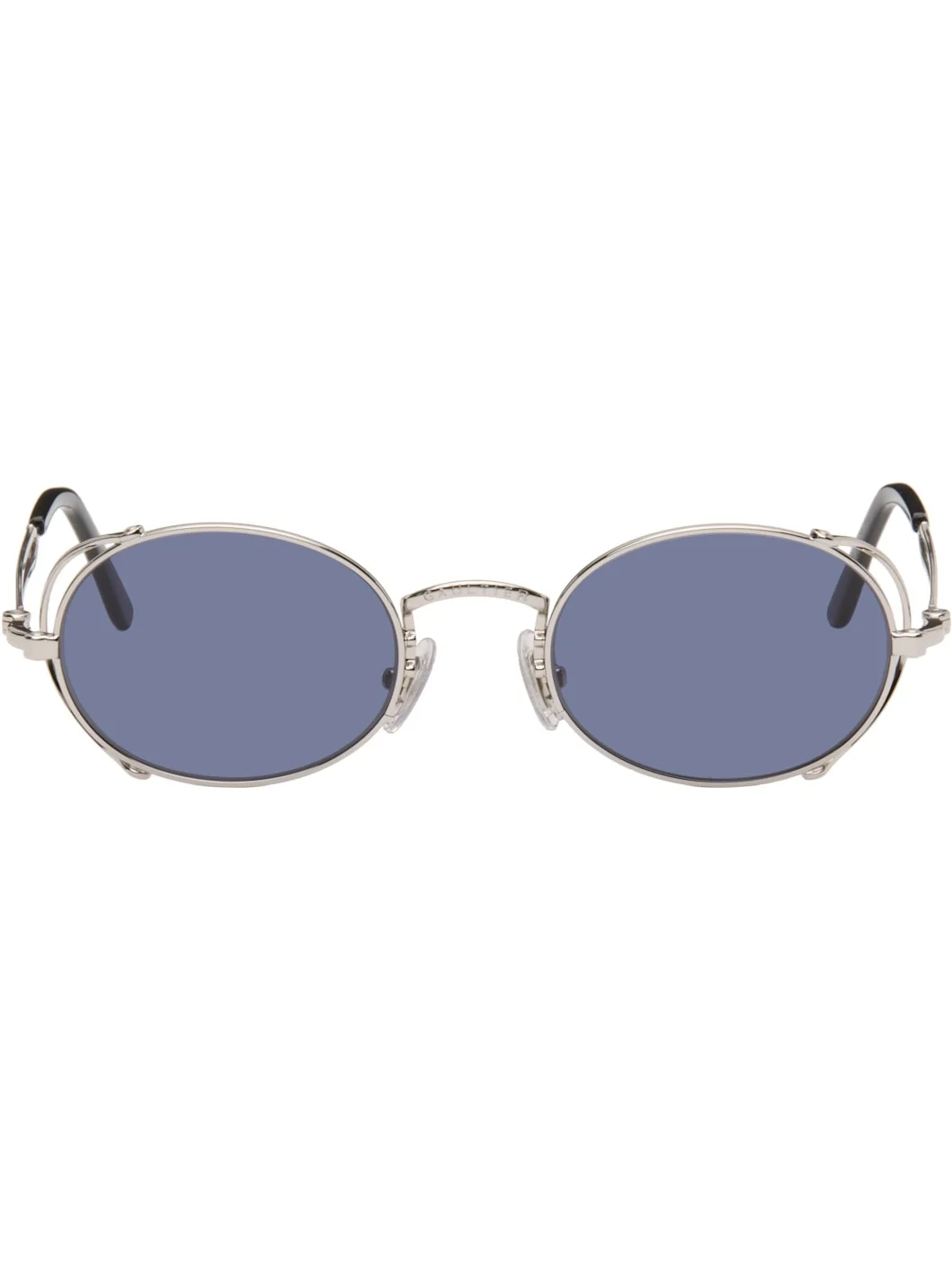 Oval metal-frame sunglasses · Blue lenses, category 3 · 100% UVA/UVB protection · Anti-glare coating · Logo engraved at bridge · Adjustable rubber nose pads · Cutout at arms · Mazzucchelli acetate temple tips · Includes case · Size: 49.20 145 Supplier color: Silver Metal. Made in France 252808M134003