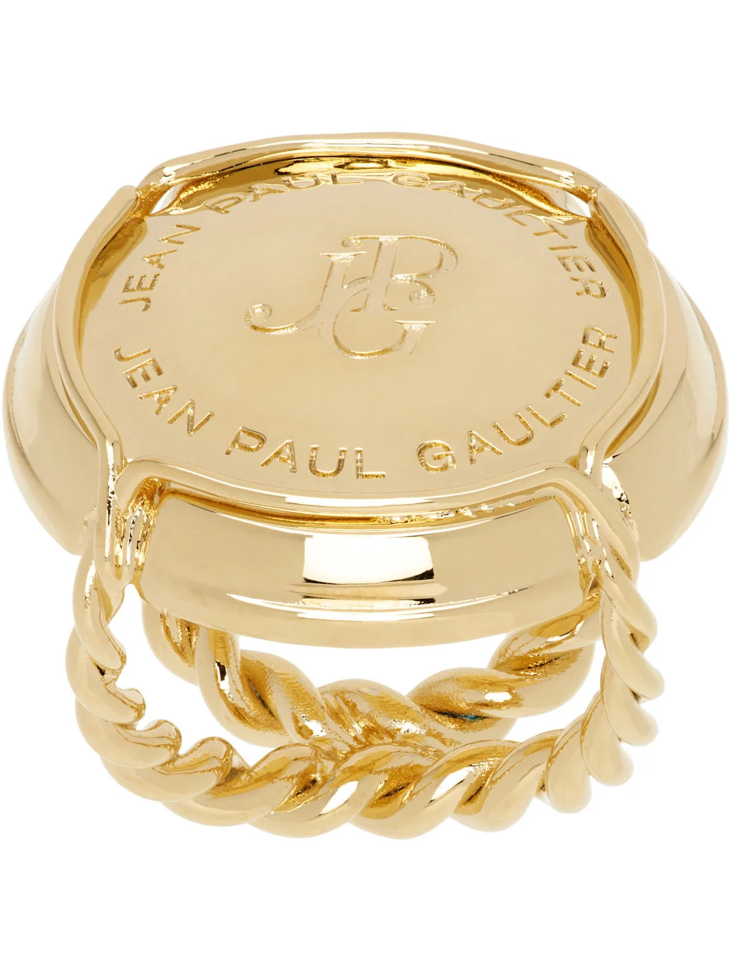 Sculptural ring in gold-tone brass. · Twisted detailing throughout · Logo engraved at face Supplier color: Gold Brass. Made in Italy 252808M147002