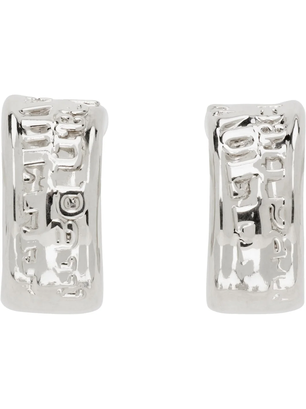 Pair of open hoop earrings in silver-tone brass. · Logo at face · Post-stud fastening · D1.5" Supplier color: Silver Brass. Made in Italy 252808M144003