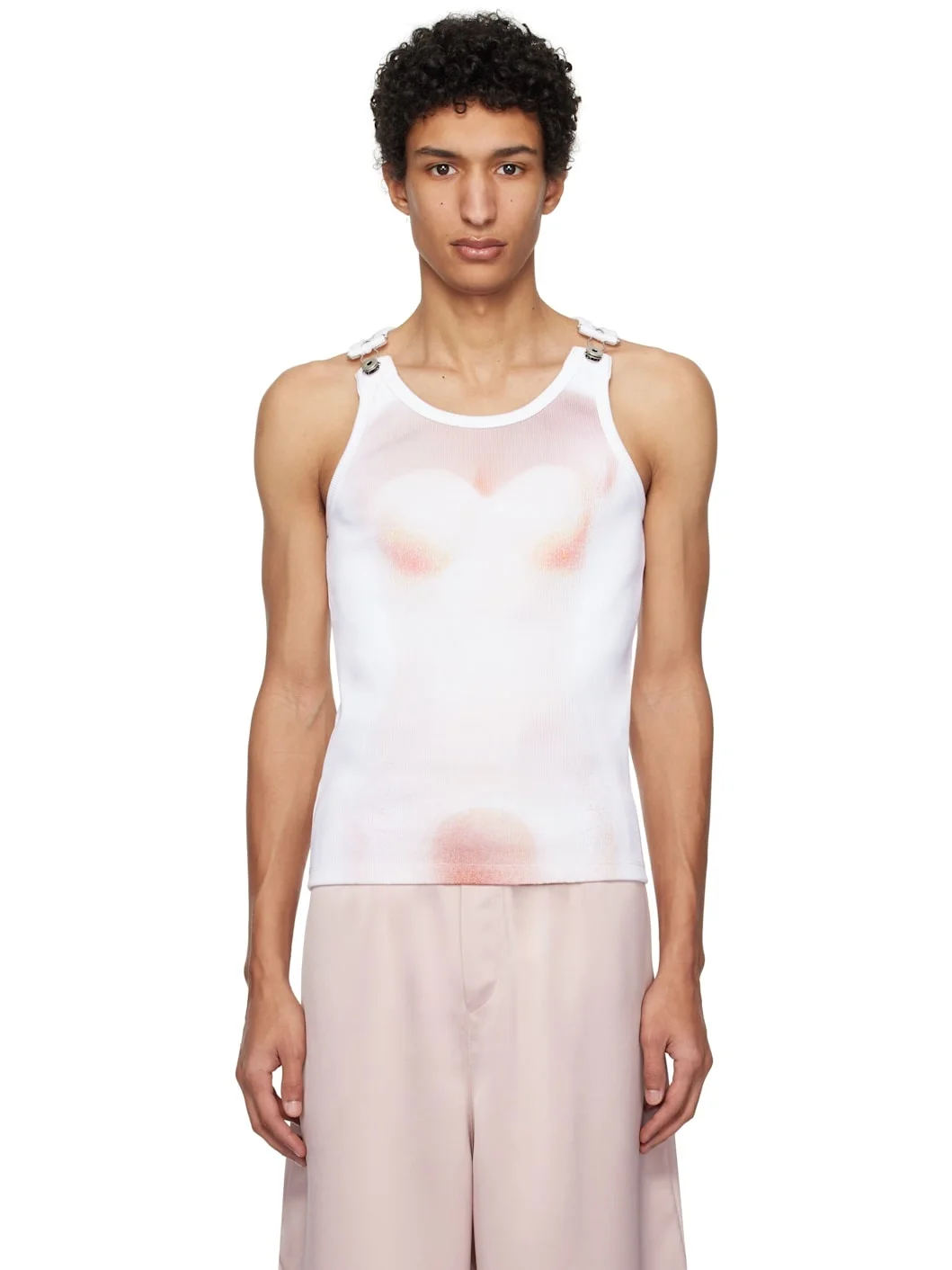 Cotton ribbed jersey tank top. Graphic printed throughout. · Scoop neck · Shoulder straps with overall buckles · Locker loop at back collar · Logo-engraved silver-tone hardware Supplier color: White/Pale pink 95% cotton, 5% elastane. Made in Portugal 251808M214004