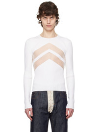 Rib-knit viscose-blend sweater. · Crewneck · Sheer mesh chevron panels at front · Locker loop at back collar Supplier color: White 67% viscose, 28% polyester, 5% polyamide. Made in Italy 251808M201001