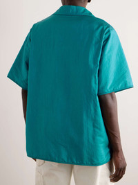Modelled after traditional bowling styles, Jil Sander's shirt is padded to enhance the boxy fit. It's cut from lustrous shell and fastens with polished silver-tone snaps. An appliquéd tab at the hem signifies the brand's '+' line of luxurious pieces designed for "life outside of the city". Size & Fit - Fits true to size. Take your normal size - Designed for a boxy fit - Lightly padded, non-stretchy fabric - Model is shown wearing a M - Model measures: chest 38"/ 96cm, height 6'2"/ 188cm Details & Care - Teal shell - Snap fastenings - 64% polyamide, 36% silk; filling: 100% polyester - Dry clean