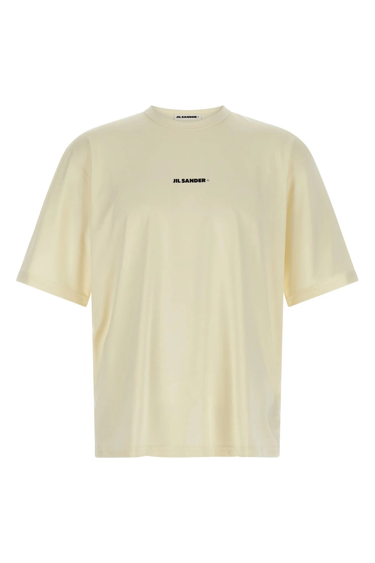cod. J47GC0023J20033104 'Activewear' T-shirt in stretch tech fabric, front logo, crew neck, short sleeves. SUSTAINABLE: Product made from recycled polyester. Color: Beige Size & Fit: true to size fit Composition: 91% polyester, 9% elastane Made in: Italy