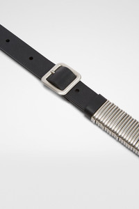 Leather belt with flat square metal buckle and loops Details - 2.3 cm width - soft calf leather - 100% calf leather - made in Italy - StyleID: J25TP0010P7370001