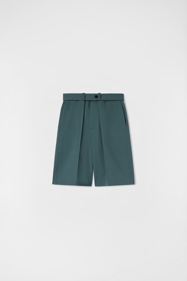 One-pleat wool shorts with belt Details - relaxed fit and wide leg - zip and hook closure at waist - side-seam pockets - two welt pockets with flap on the back - leg creases - primary fabric 100% wool, pocket lining 100% cotton, pocket lining 100% cotton - made in Italy - StyleID: J22KA0105J40021305 Care - dry clean only Details - model is 187cm/6'1" and is wearing a size 46 IT