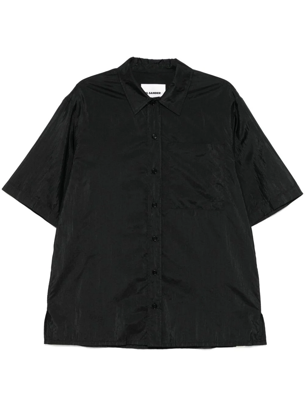 short sleeve shirt Highlights - Black - Front button fastening - Chest patch pocket Made in Italy Composition Polyamide 64%, Silk 36% SIZE & FIT Model measurements Height 6 ft 0 in(1.84 m) Bust/Chest 35.82 in(91 cm) Hips 37 in(94 cm) Waist 28.34 in(72 cm) FittingInformation Designed to be unstructured, offering a loose fit throughout Made from a lightweight non-stretch fabric
