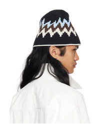 Hand-crocheted cotton bucket hat in black. Jacquard stripes throughout. Supplier color: Black/Haze/Chocolate/Porcelain
