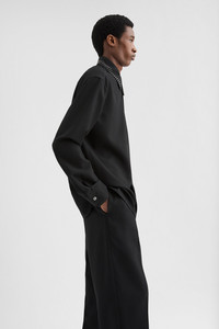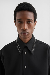 Long-sleeved wool poplin shirt with metal button closure and metal stud application on collar Details - regular and straight fit - classic collar with metal stud application - centre-front snap button closure - classic yoke - one-pleat sleeve with one-button cuff - wool poplin - 100% wool - made in Italy - StyleID: J22DL0318J40249001 Care - dry clean only - iron with care Fit - model is 187cm/6'1" and is wearing a collar size 40
