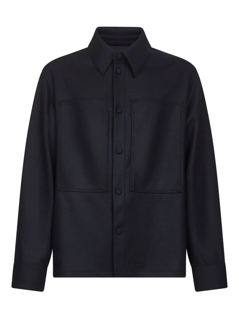patch-pocket snap-button shirt Highlights - Blue - Classic collar - Snap-button placket - Long sleeves - Patch pockets - Side slits Made in Italy Composition Wool 100% Washing instructions Read Manufacturer Guidelines
