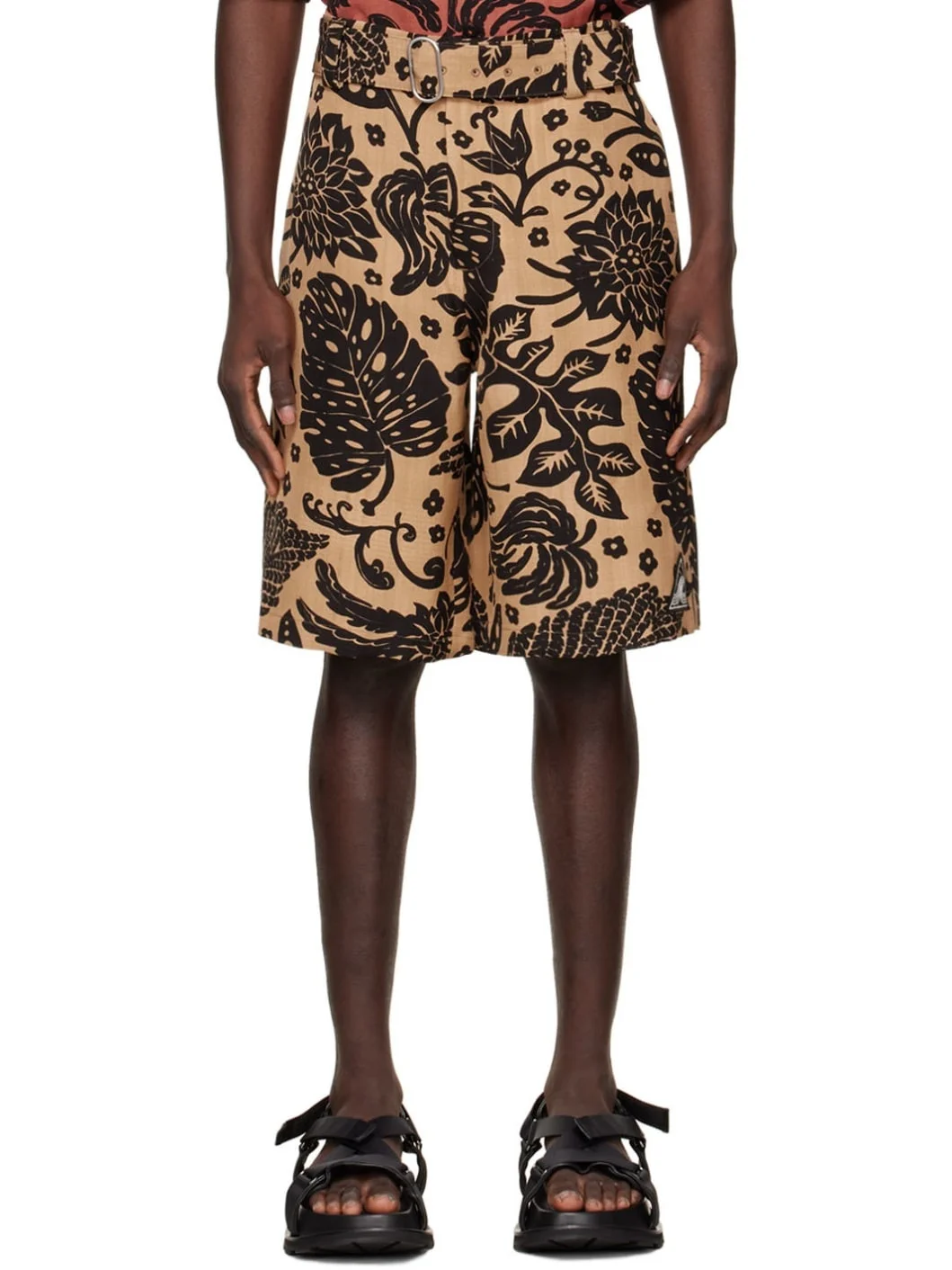 Viscose canvas shorts. Jacquard woven graphic pattern throughout. · Belt loops and detachable pin-buckle belt · Zip-fly · Logo patch at leg · Four-pocket styling Supplier color: Open orange 100% viscose.