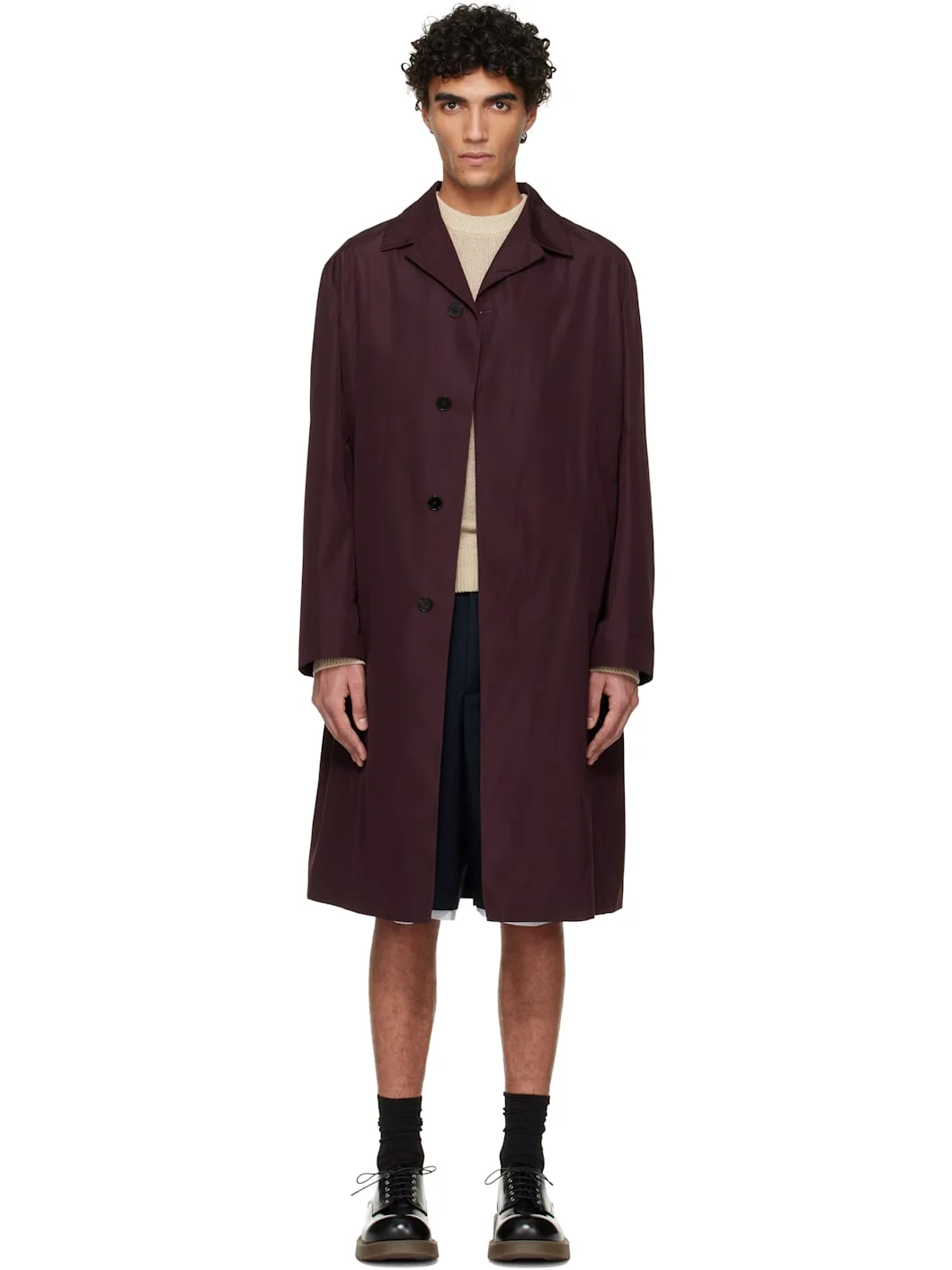 Taffeta coat. · Notched lapel · Button closure · Welt pockets at waist · Central vent at back hem · Welt pockets at interior · Full satin lining Supplier color: Plum Body: 100% polyester. Lining: 100% viscose. Made in Italy 261249M176000