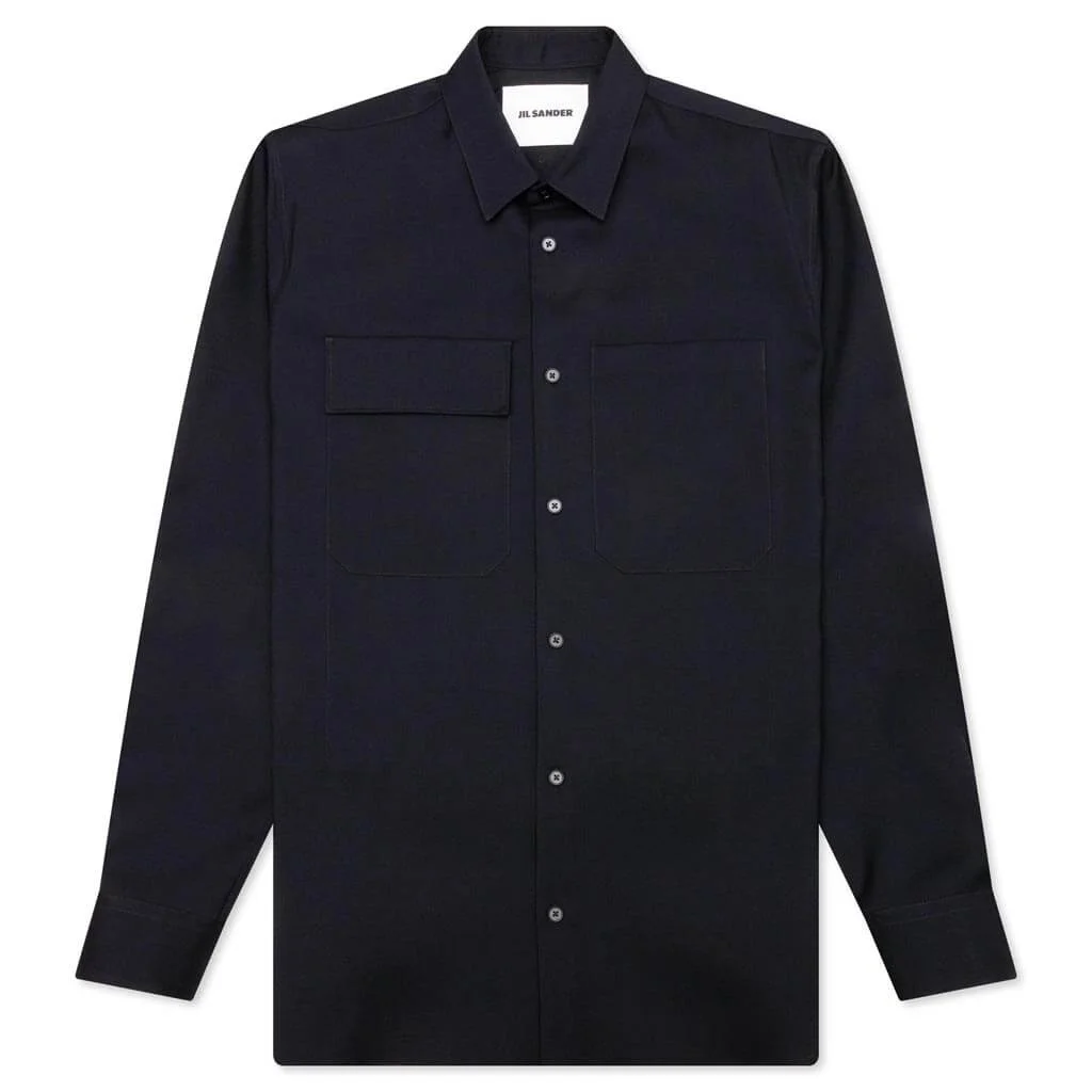 From the luxury brand Jil Sander, the Button Up Shirt is crafted from a wool blend with double chest pockets, the left with a flap detail for an asymmetrical effect. Features button closure sleeves and a spread collar. - Button closure - Barrel cuffs - Straight hem - Style No: J23DL0003-J40117-401