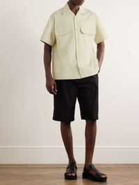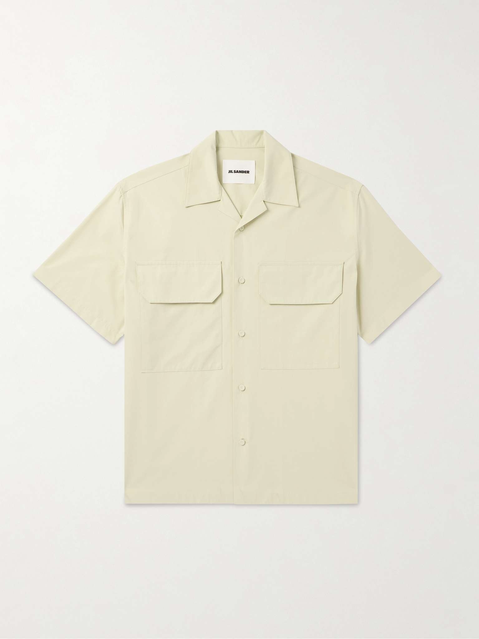 Jil Sander's shirt is an elevated take on utility styles. Cut in a contemporary, boxy shape, it's tailored from substantial cotton-poplin with a camp collar and flap pockets at the chest. Style yours untucked with wide-leg trousers and square sunglasses. Size & Fit - Fits true to size. Take your normal size - Designed for a boxy fit - Mid-weight, non-stretchy fabric - Model is shown wearing an EU 39 (UK/US 15.5) - Model measures: chest 38"/ 96cm, height 6'2"/ 188cm Details & Care - Beige cotton-poplin - Button fastenings - 100% cotton - Dry clean