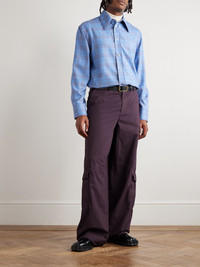 Checked Wool and Linen-Blend Shirt Blue