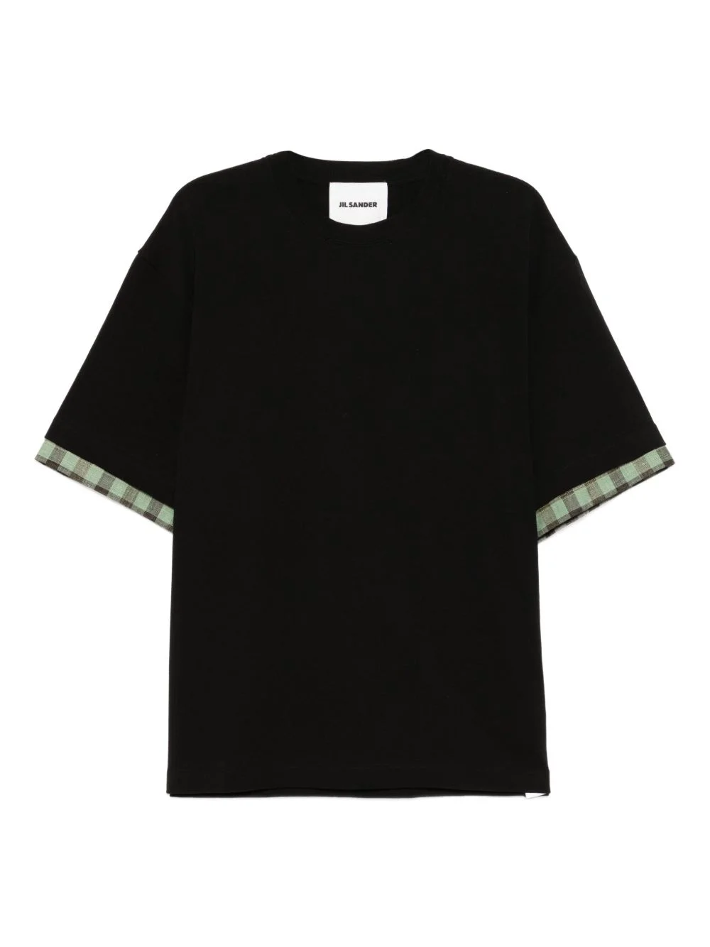 checked-sleeve T-shirt