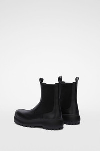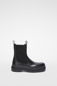 Leather Chelsea boot with Vibram sole, elasticated sides and pull tabs Details - round toe - pull tabs - Vibram tractor sole - Jil Sander+ logo branded insole - slightly shiny calf leather - 100% calf leather - made in Italy - StyleID: J50WU0006P4942001