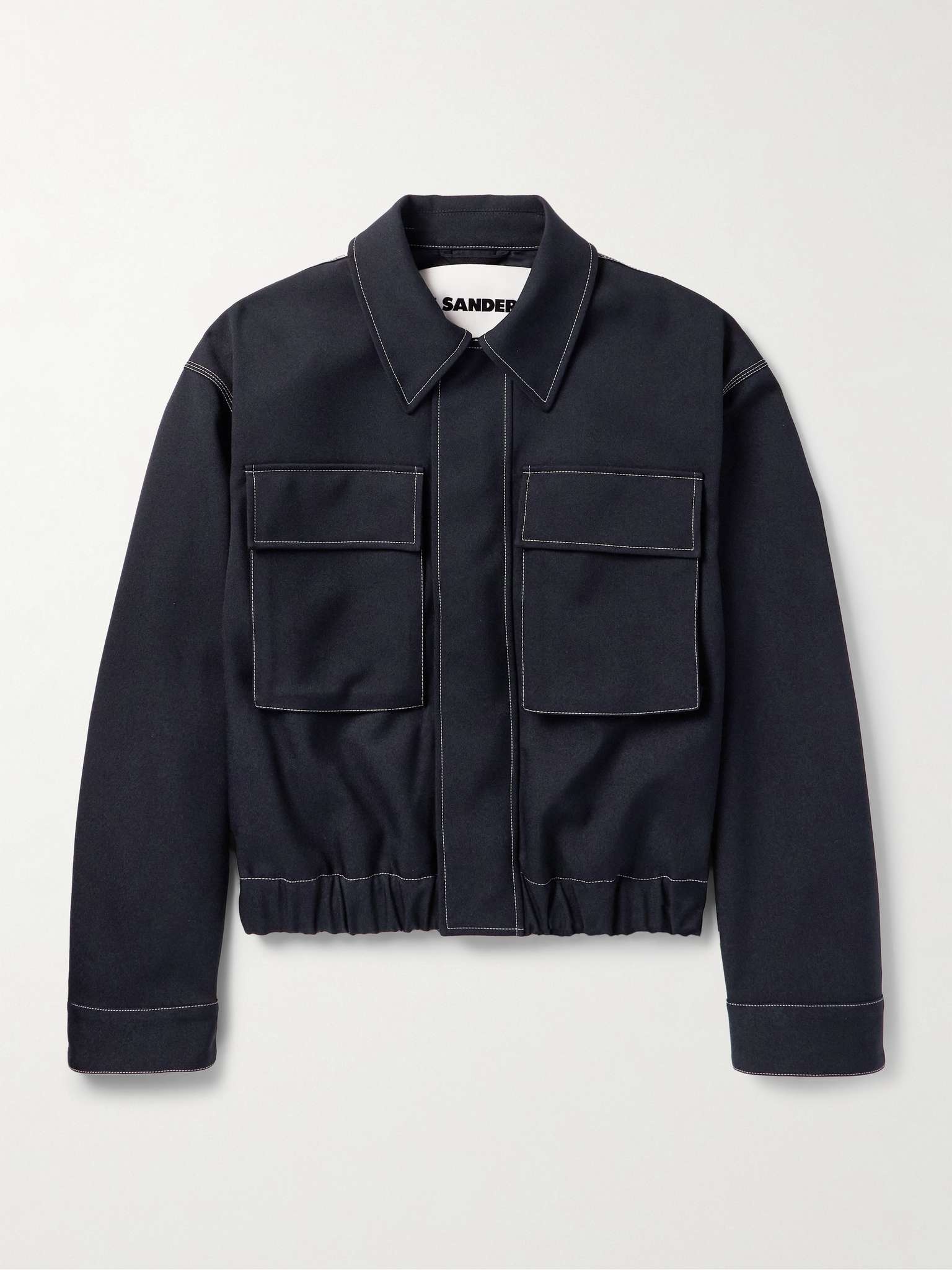 The utilitarian bend of Jil Sander's blouson jacket is pronounced with contrasting topstitching that highlights the boiler-style pockets. It's made from durable recycled-gabardine and has a streamlining covered placket. Size & Fit - Model wears a size larger to achieve a looser fit - Mid-weight, non-stretchy fabric - Model is shown wearing an IT 48 - Model measures: chest 36"/ 92cm, height 6'2"/ 188cm Details & Care - Midnight-blue recycled-gabardine - Snap and zip fastening - 100% recycled polyester - Hand wash
