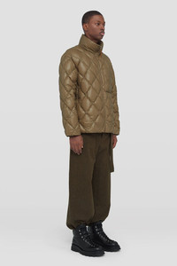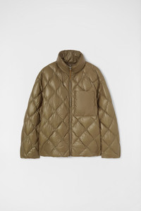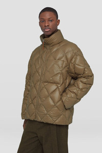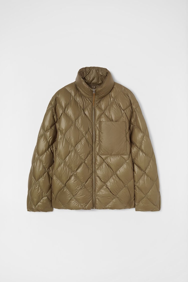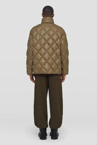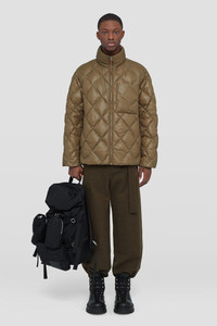 Recycled nylon down jacket with hidden hood at collar and front patch pocket Details - relaxed fit and cropped cut - stand collar with hidden internal hood - front zip closure and drawstring hem - in-seam pockets and chest patch pocket - diamond-shaped quilting - Jil Sander+ logo printed on back label - packaway bag included - lightweight recycled nylon with a shiny finish - 100% polyamide-nylon, main padding 85% goose down 15% goose feather, outer padding 100% polyester - made in Italy - StyleID: J47AF0141J70007218 Care - dry clean only Fit - model is 187cm/6'1" and is wearing a size M - Please note that the physical label of the item will show the international size