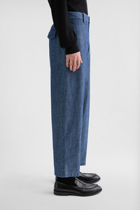 Lightweight cotton chambray trousers with single pressed crease and cropped tapered leg Details - relaxed fit - dropped crotch and regular waist - belt loops - zip fly and hook closure - side-seam pockets and back welt pockets - cotton pocket lining - lightweight cotton chambray - 100% cotton - made in Italy - StyleID: J22KA0345J45323406 Care - machine wash to 30°C - iron with care Fit - model is 187cm/6'1" and is wearing a size 46 IT - Please note that the physical label of the item will show the Italian size