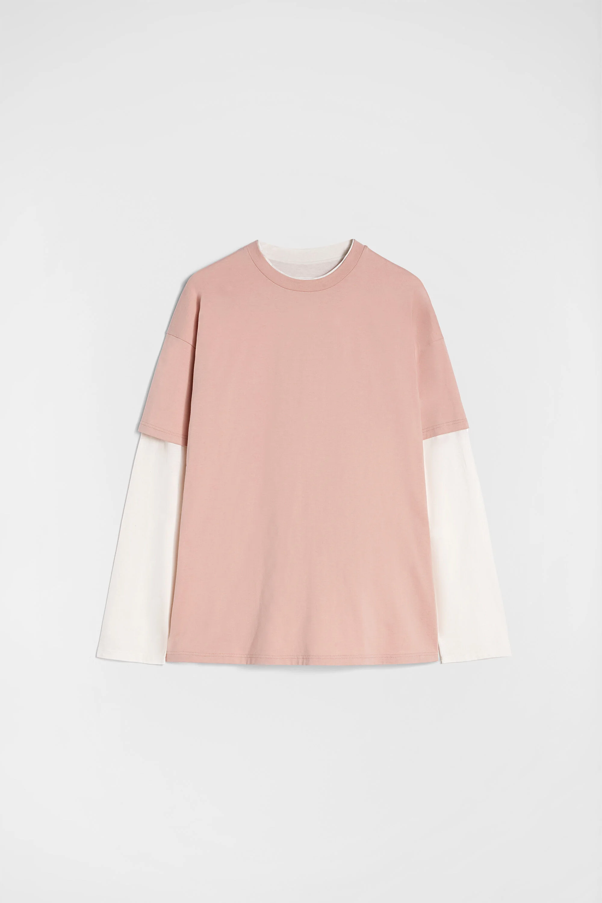 Long-sleeved cotton double layer t-shirt with seasonal logo print on back Details - oversized fit and boxy shape - dropped shoulders - single t-shirt with double-layer effect - Jil Sander seasonal logo print on back - lightweight cotton jersey - 100% cotton - made in Italy - StyleID: J61GC0001J20332660 Care - hand wash - iron with care Fit - model is 187cm/6'1" and is wearing a size 46 IT - Please note that the physical label of the item will show the Italian size