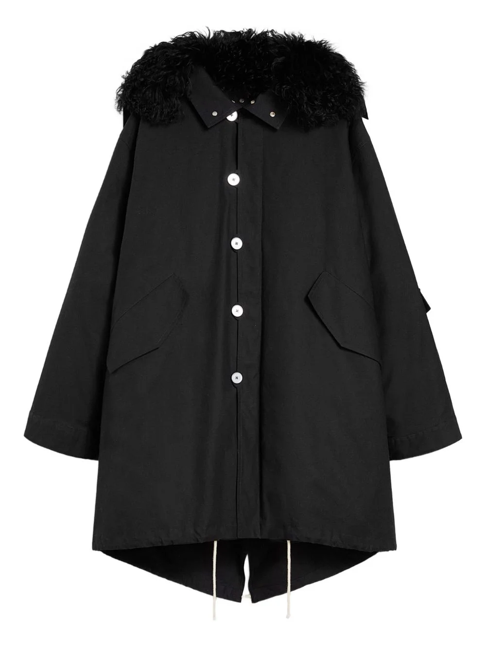 cotton parka coat Highlights - Black - Front button fastening - Detachable collar - Two side flap pockets - Drawstring hem Made in Italy Composition Cotton 100%