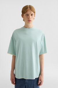 Short-sleeved two-toned cotton t-shirt with double layer effect and side Jil Sander logo tag Details - oversized fit and dropped shoulders - ribbed crew neck - Jil Sander logo tag on side seam - compact cotton jersey - 100% cotton - made in Italy - StyleID: J22GC0223J20325106 Care - dry clean only - iron with care Fit - model is 187cm/6'1" and is wearing a size M - Please note that the physical label of the item will show the international size