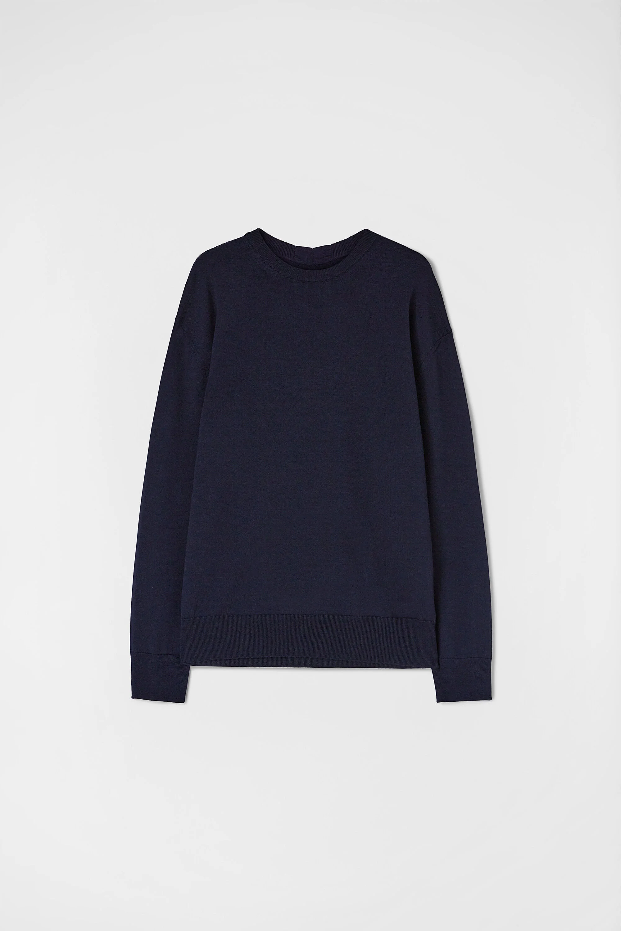 Oversized midweight long-sleeved merino wool sweater Details - oversized fit - we recommend taking one size down - dropped shoulders - crew neck and long sleeves - fully fashioning detail on the back - ribbed neck, hem and cuffs - midweight merino wool - 100% wool - made in Italy - StyleID: J23GP0003J14532402 Care - dry clean only - iron with care Fit - model is 187cm/6'1" and is wearing a size 48 IT - Please note that the physical label of the item will show the Italian size