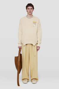 Midweight long-sleeved cotton and wool sweater Details - oversized fit - crew neck - ribbed neck, hem and cuffs - chunky cotton and wool blend yarn - primary fabric 50% wool 50% cotton - made in Italy - StyleID: J22GP0113J15380109 Care - dry clean only Details - model is 187cm/6'1" and is wearing a size 46 IT