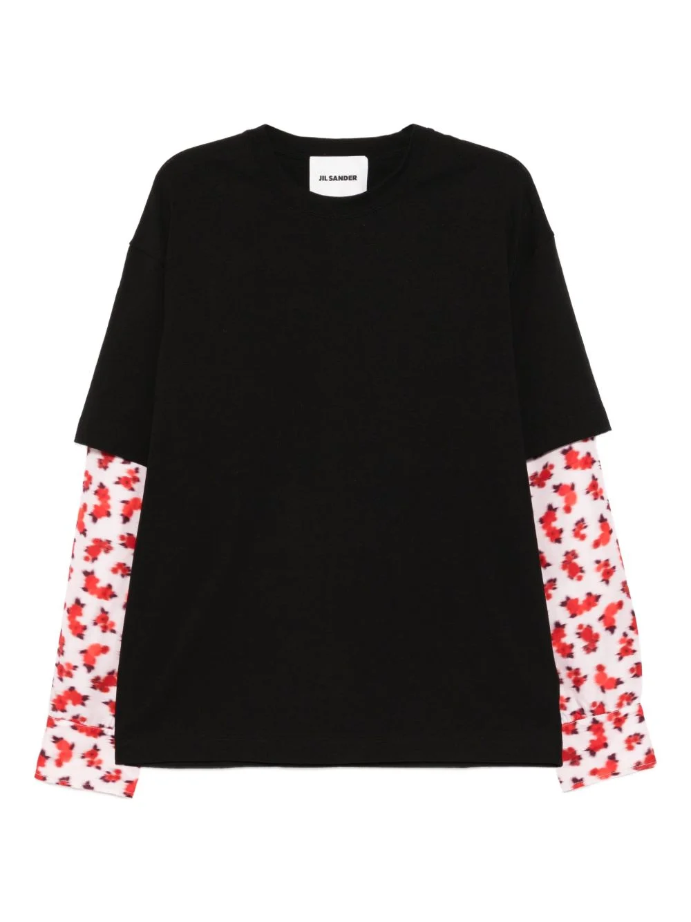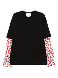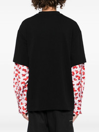 crew-neck T-shirt Highlights - Black - Floral print at the sleeve - Long sleeves Made in Italy Composition Viscose 100% Outer: Cotton 100% SIZE & FIT Model measurements Height 6 ft 1 in(1.86 m) Bust/Chest 33.46 in(85 cm) Hips 35.43 in(90 cm) Waist 31.1 in(79 cm) FittingInformation Designed to be unstructured, offering a loose fit throughout Made from a midweight non-stretch fabric, this piece offers minimal elasticity when worn Washing instructions Machine Wash