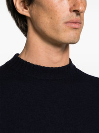 crew-neck wool jumper Highlights - Navy blue - Boiled wool - Fine knit - Crew neck - Drop shoulder - Ribbed cuffs and hem - Long sleeves - Straight hem Made in Italy Composition Wool 100% SIZE & FIT Model measurements Height 6 ft 2 in(1.89 m) Bust/Chest 37.79 in(96 cm) Hips 37 in(94 cm) Waist 29.92 in(76 cm) FittingInformation Designed to be unstructured, offering a loose fit throughout Made with a midweight knit, this piece offers some stretch This piece fits true to size – take your usual size Washing instructions Dry Clean Only