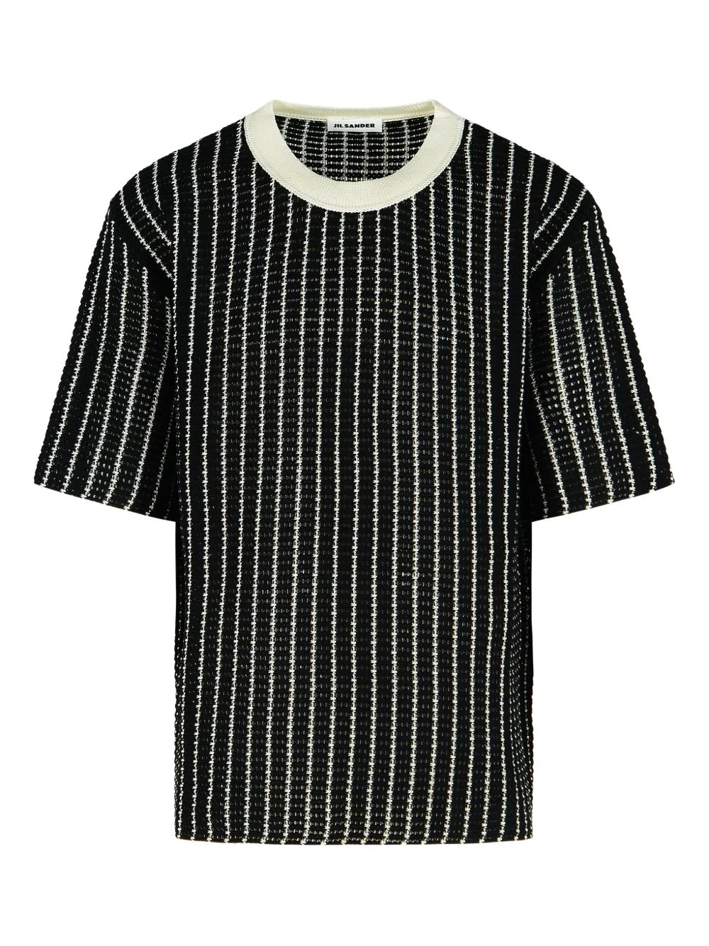 crochet striped T-shirt Highlights - Black - Crochet effect - Ribbed crew neck - Striped pattern - Short sleeves Made in Italy Composition Cotton 100% Washing instructions Read Manufacturer Guidelines