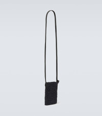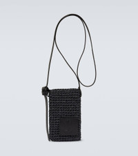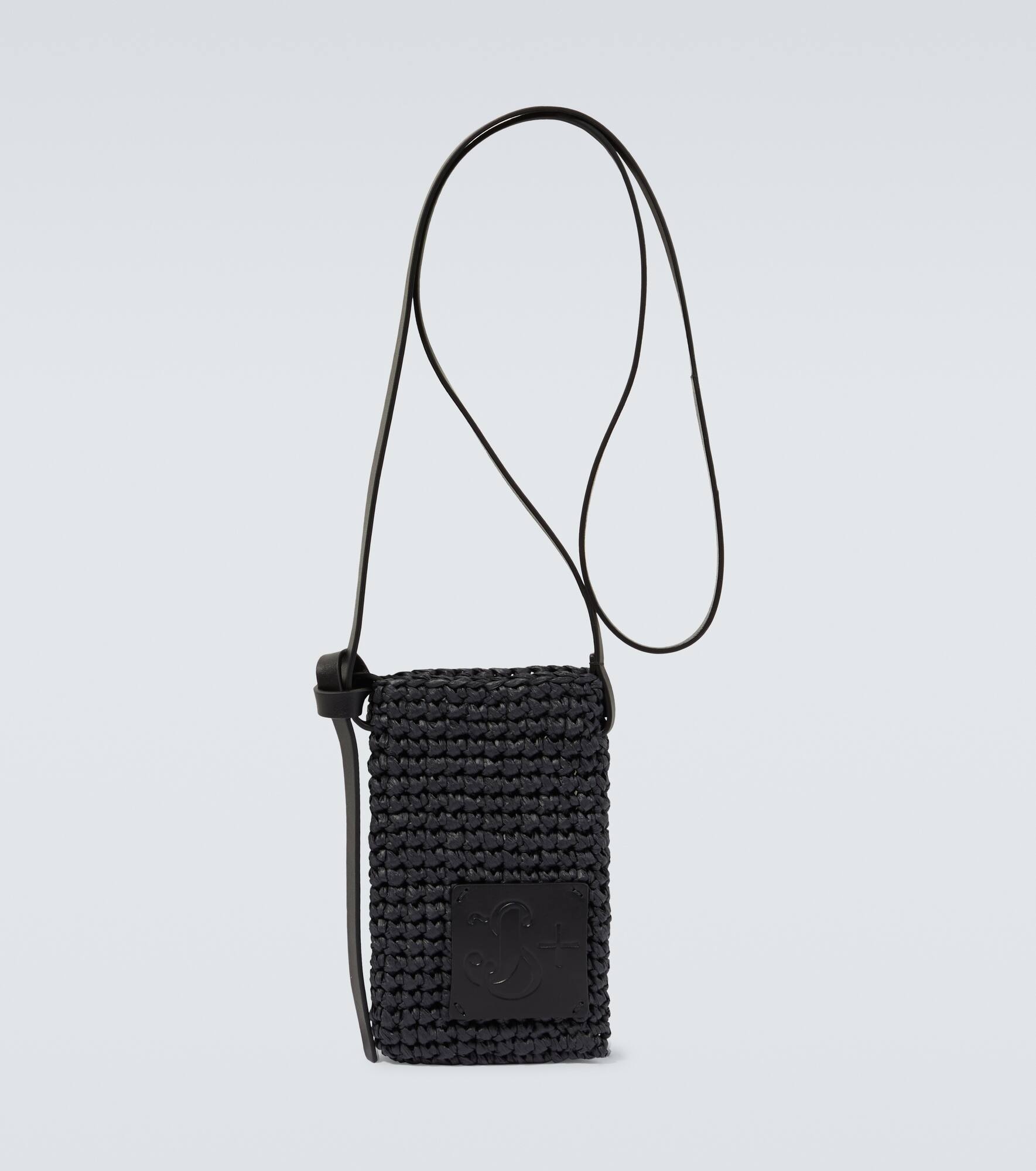 Product Details - Material: raffia - Lining: fabric - Made in Italy - Designer color name: Black - Trim: leather - Closure: open top - Adjustable shoulder strap - Comes with dust bag - Item number: P00883412 Size & Fit - Adjustable length - Height 16cm-6.5" - Width 10cm-4" - Depth 1cm-0.5" - Max. length shoulder strap 124cm-49" - Suitable for medium smartphones (e.g. iPhone 12, 12 Pro/ Samsung Galaxy S21/ Huawei P40)