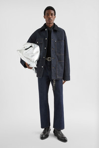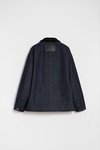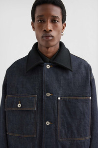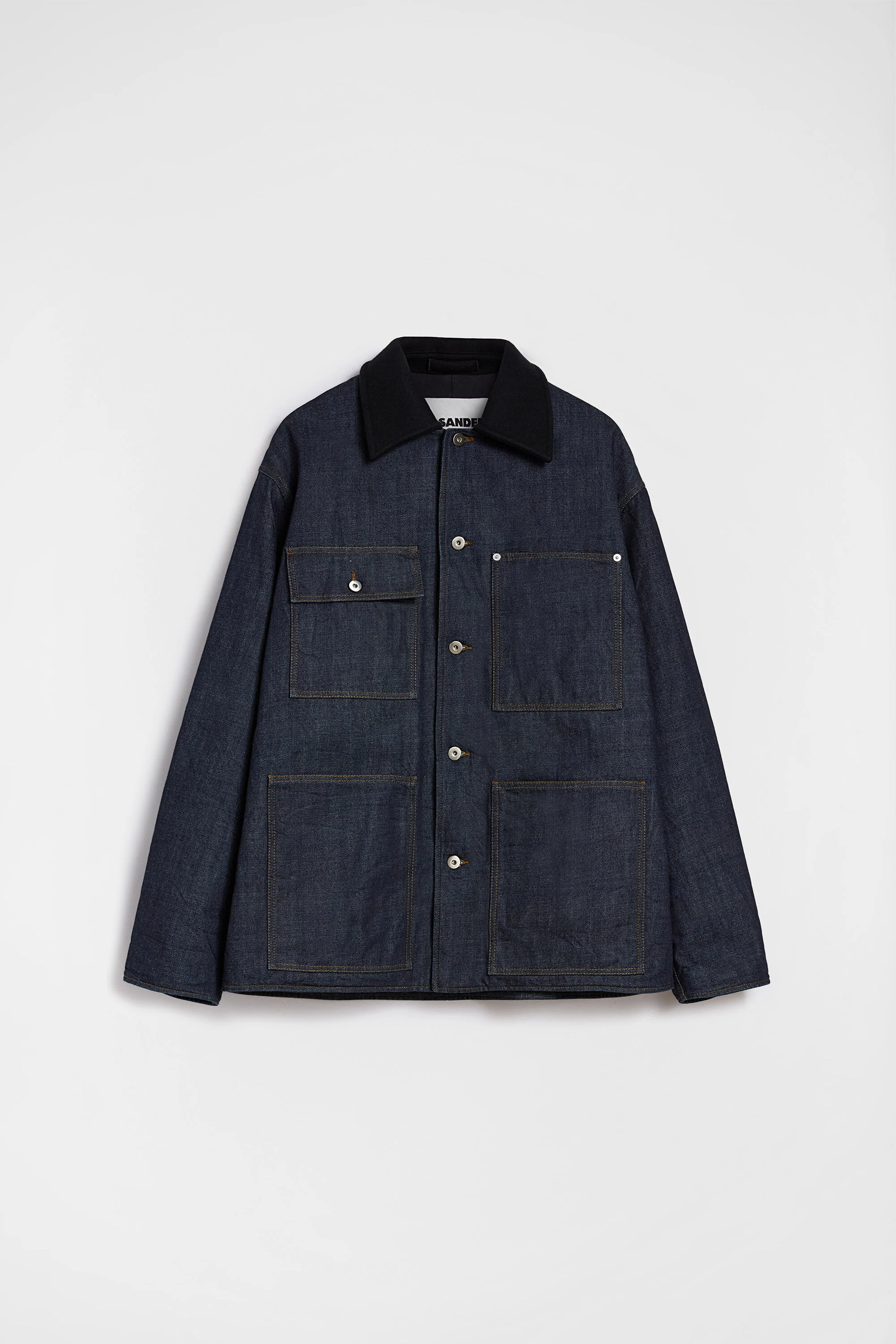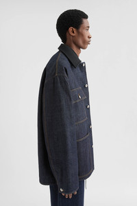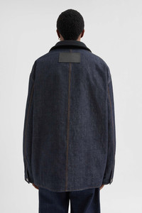 Cotton denim jacket with contrasting fabric collar and back leather patch with embossed Jil Sander logo Details - oversized fit and boxy shape - dropped shoulders - pointed collar in contrasting fabric - centre-front shank button closure - three patch pockets and one patch pocket with flap - back leather patch with embossed Jil Sander logo - quilted viscose lining with light padding - diagonal cotton denim - 100% cotton - made in Italy - StyleID: J22SW0083J46463010 Care - dry clean only - iron with care Fit - model is 187cm/6'1" and is wearing a size 50 IT - Please note that the physical label of the item will show the Italian size