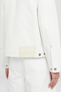 Long-sleeved Japanese denim jacket with back leather patch with embossed Jil Sander logo Details - regular fit and boxy shape - flat pointed collar - centre-front shank button closure - side-seam pockets - two patch pockets with flap and button closure - button regulation on cuffs and hem - front and back seams - 100% cotton - made in Japan - StyleID: J23SW0008J45288102 Care - professional clean only Fit - model is 187cm/6'1" and is wearing a size M - Please note that the physical label of the item will show the international size