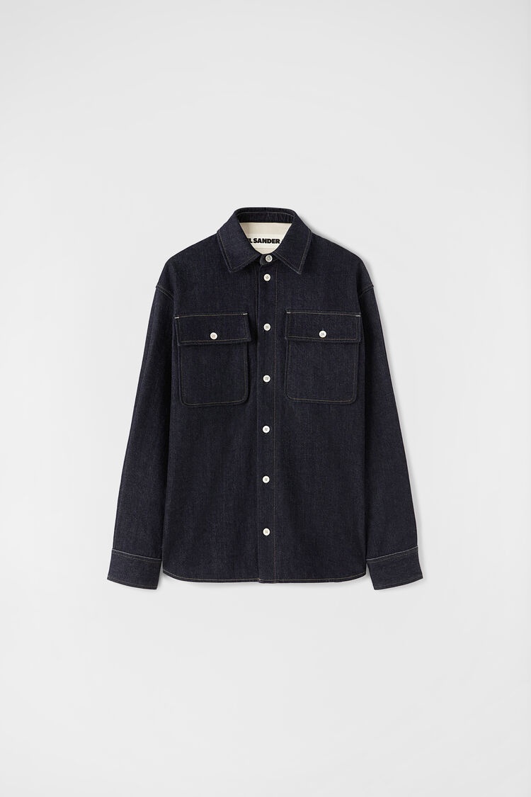 Regular-fit denim overshirt with shirt collar Details - regular fit - shirt collar with one button stand - front closure with visible buttons - patch pockets with flaps and button closure - shirt cuffs with placket and one pleat - in-seam pockets - curved hem - raw denim - primary fabric: 100% cotton - StyleID: J47DL0108J46569405 Care - dry clean only - iron with care Details - model is 187cm/6'1" and is wearing a size M