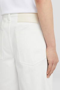 Japanese denim shorts with back leather patch with embossed Jil Sander logo Details - relaxed fit - regular waist and crotch - button closure - waistband with beltloops - five pockets - back dart detail - leather patch with embossed Jil Sander logo on back - 100% cotton - made in Japan - StyleID: J23KA0110J45288102 Care - professional clean only Fit - model is 187cm/6'1" and is wearing a denim size 30 - Please note that the physical label of the item will show the Denim sizing