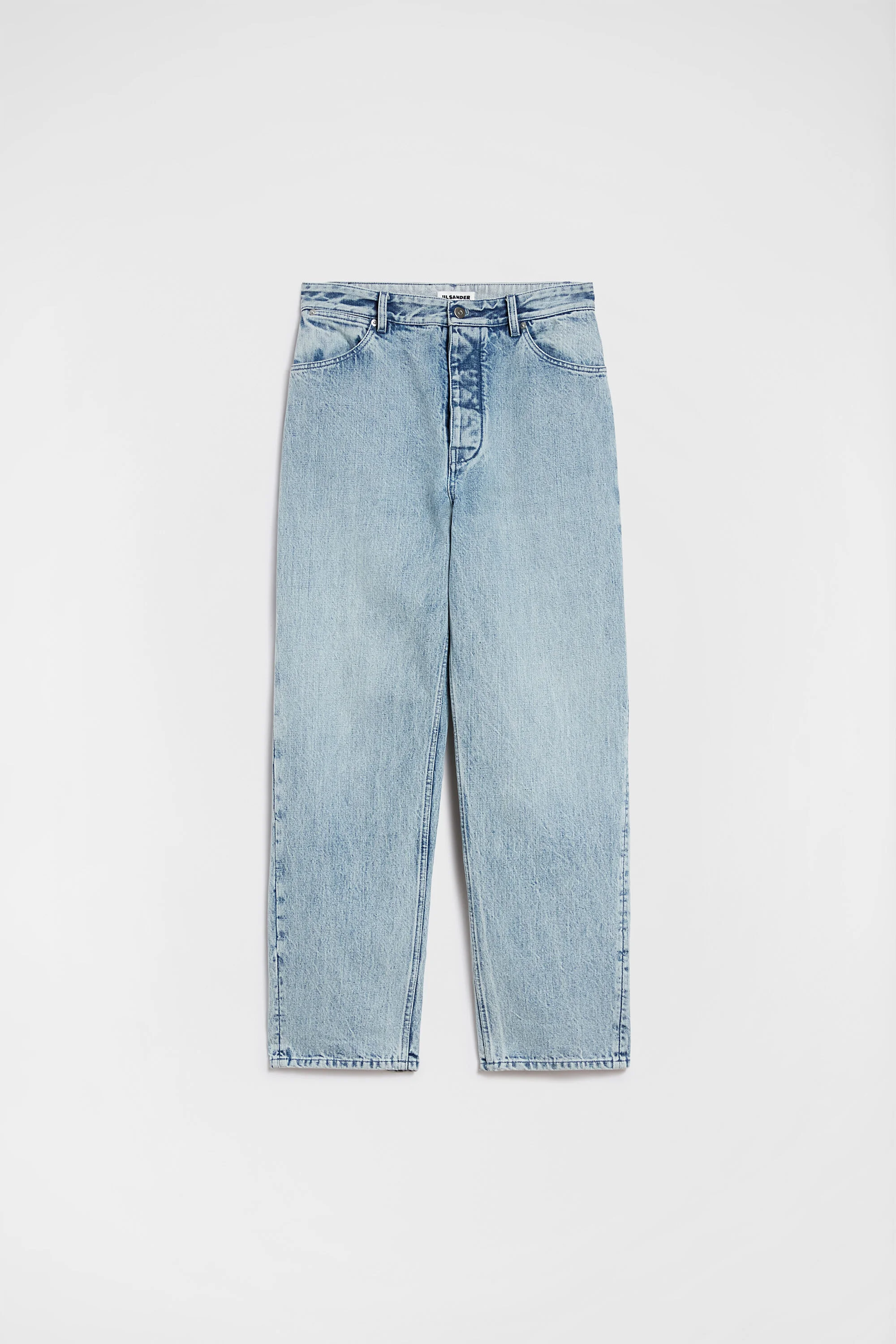 Relaxed-fit cotton denim trousers with back leather patch with embossed Jil Sander logo Details - relaxed fit - slightly dropped crotch and regular waist - zip fly and shank button closure - five-pocket - curved side seam - back leather patch with embossed Jil Sander logo - cotton pocket lining - diagonal cotton denim - 100% cotton - made in Italy - StyleID: J22KA0309J46463481 Care - machine wash to 30°C - iron with care Fit - model is 187cm/6'1" and is wearing a denim size 30 - Please note that the physical label of the item will show the Denim sizing