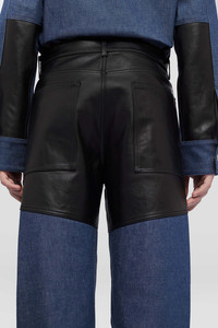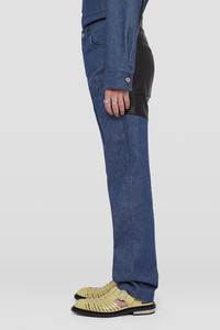Regular-fit textured cotton denim trousers with back leather application Details - regular fit - regular waist and crotch - button closure - waistband with beltloops - side-seam pockets and back patch pockets - leather application on back - textured dry cotton denim - 100% cotton - made in Italy - StyleID: J22KA0267J46655420 Care - dry clean only - iron with care Fit - model is 187cm/6'1" and is wearing a size 46 IT - Please note that the physical label of the item will show the Italian size