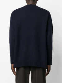 drop-shoulder long-sleeve jumper navy blue wool knitted construction ribbed-knit edge crew neck drop shoulder long sleeves step hem Made in Italy Composition Wool 100% SIZE & FIT Model measurements Height 6 ft 2 in(1.87 m) Bust/Chest 36.41 in(92.5 cm) Hips 37 in(94 cm) Waist 29.52 in(75 cm) FittingInformation Designed to be unstructured, offering a loose fit throughout Made with a midweight knit, this piece offers some stretch This piece fits true to size – take your usual size Washing instructions Dry Clean Only