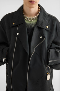 Oversized-fit technical duchess jacket with asymmetrical zip closure and matching belt with metal buckle Details - oversized fit and dropped shoulders - open pressed collar and rever with snap buttons - front asymmetrical zip closure - four zipped pockets and zipped cuffs - sculptural sleeves with left-hand zipped pocket - hem matching belt with metal buckle - viscose lining - technical duchess - 100% polyester - made in Italy - StyleID: J21SW0104J70210001 Care - dry clean only - iron with care Fit - model is 187cm/6'1" and is wearing a size 50 IT - Please note that the physical label of the item will show the Italian size