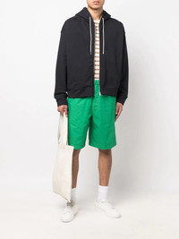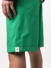 elasticated knee-length shorts green cotton elasticated waistband two rear patch pockets straight leg knee-length Made in Italy Composition Lining: Cotton 100% Outer: Cotton 100% SIZE & FIT Model measurements Height 6 ft 2 in(1.89 m) Bust/Chest 36.22 in(92 cm) Hips 37.79 in(96 cm) Waist 29.52 in(75 cm) FittingInformation This piece fits true to size. We recommend you get your regular size Designed for a slim fit at the waist and loose over the leg Made with a mid-weight non-stretch fabric Washing instructions Dry Clean Only