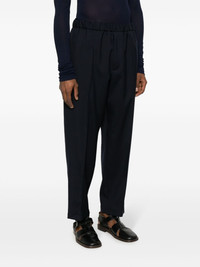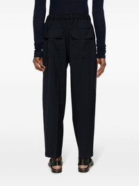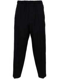elasticated-waistband trousers Highlights - Midnight blue - Cotton - Wool - Cropped leg - Elasticated waistband - Slip pockets to the sides - Two rear flap pockets Made in Italy Composition Lining: Cotton 100%, Cupro 100% Outer: Wool 100% SIZE & FIT Model measurements Height 6 ft 2 in(1.88 m) Bust/Chest 36.61 in(93 cm) Hips 35.82 in(91 cm) Waist 27.95 in(71 cm) FittingInformation Designed for a tapered leg, offering a loose unrestricted fit over the leg with a closer fit towards the ankle The elasticated waist allows for a comfortable fit Made from a midweight non-stretch fabric This piece fits true to size – take your usual size Washing instructions Dry Clean Only