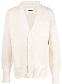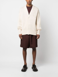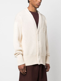 embroidered-logo cotton cardigan Highlights - Cream white - Cotton - Cable knit - Embroidered logo at the chest - V-neck - Front button fastening - Long sleeves - Ribbed cuffs and hem - Straight hem Made in Italy Composition Cotton 100% SIZE & FIT Model measurements Height 6 ft 1 in(1.85 m) Bust/Chest 38.58 in(98 cm) Hips 37 in(94 cm) Waist 30.31 in(77 cm) FittingInformation Designed for a relaxed fit, this piece allows for comfort and movement when worn Made with a heavyweight knit, this piece offers some stretch This piece fits true to size – take your usual size Measurement CHEST 43.3 in(110 cm) LENGTH 25.98 in(66 cm) SLEEVE LENGTH 24.01 in(61 cm) Washing instructions Dry Clean Only