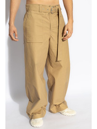 embroidered logo cotton trousers Highlights - Beige - Cotton - Buckle fastening - Belted waist - Two front patch pockets - Embroidered logo to the side - Two rear flap pockets - Straight leg Made in Italy Composition Cotton 100% Washing instructions Dry Clean Only