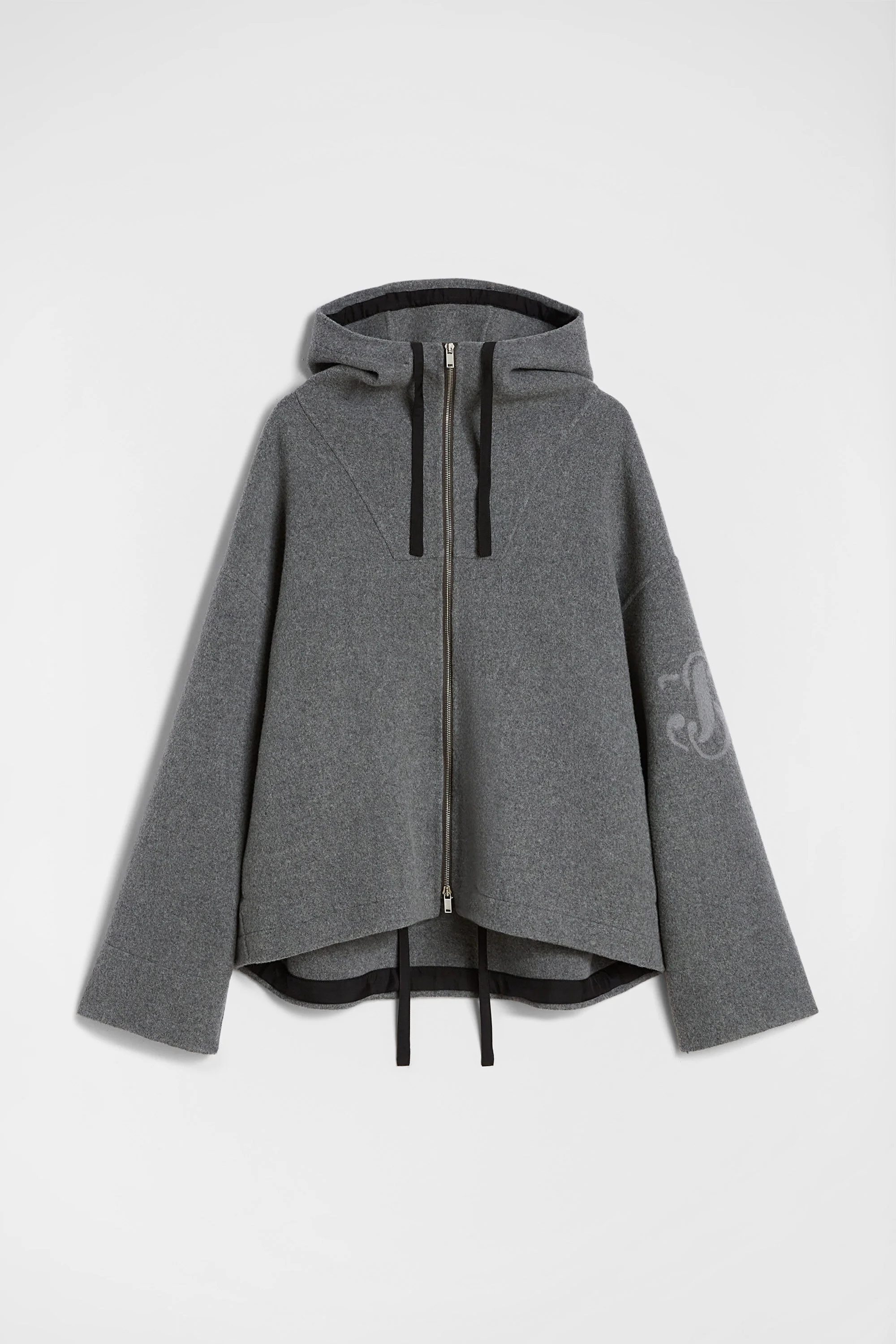 Double felted wool blouson with needle-punched Jil Sander+ monogram Details - oversized fit and boxy shape - dropped shoulders - centre-front zip closure and drawstring hood - side-seam pockets - Jil Sander+ logo needle-punched on left sleeve - drawstring hem - viscose lining - double felted wool - 100% virgin wool - made in Italy - StyleID: J47SW0014J40020034 Care - dry clean only - iron with care Fit - model is 187cm/6'1" and is wearing a size M - Please note that the physical label of the item will show the international size